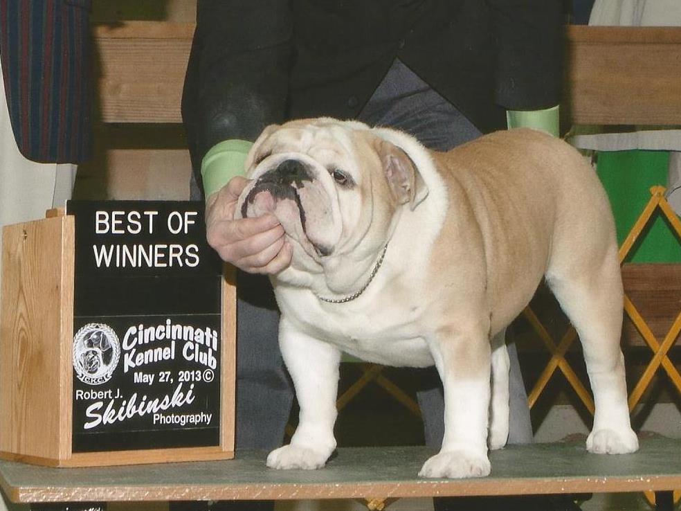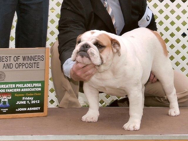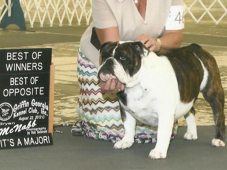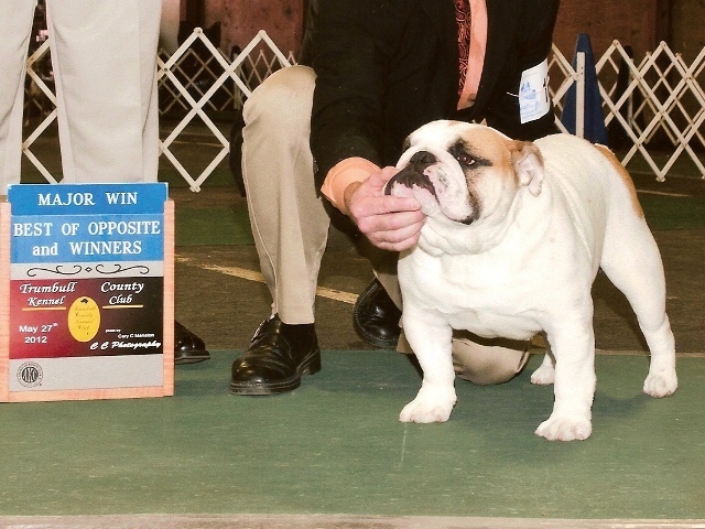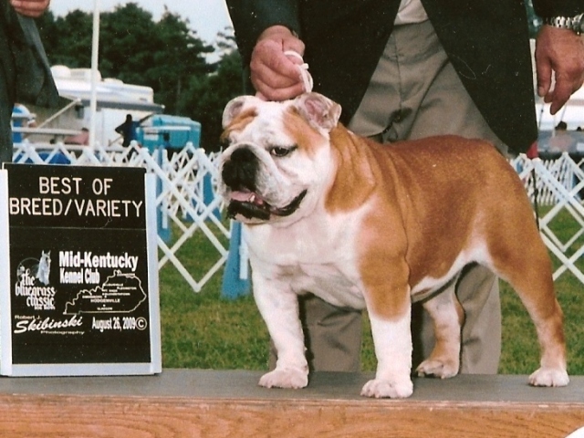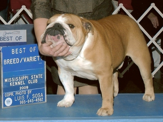Nationally Ranked the 2010 #5 BULLDOG RETIRED a Multiple Best Of Breed Winner, a Group Winner, a Multiple Group Placement Winner and Nationally Ranked the 2010 #5 Bulldog, he received an Invitation to the 2010 AKC/Eukanuba National Championship!! Casanova was chosen as Best of Opposite Sex over 17 male specials at the 2010 Eukanuba National Championships and he also received as Invitation to the 2011 Westminster Dog Show!! Casanova was awarded the title of AKC BRONZE GRAND CHAMPION on November 27, 2010 Casanova was awarded the title of AKC GRAND CHAMPION on June 15, 2010. He completed all the requirements for this prestigious award in 5 weeks!! He was one of the first 10 bulldogs to achieve this title!!! Casanova completed his championship on July 5, 2009 with back to back majors including a 4 point major! Casanova received 3 majors in two weekends. |