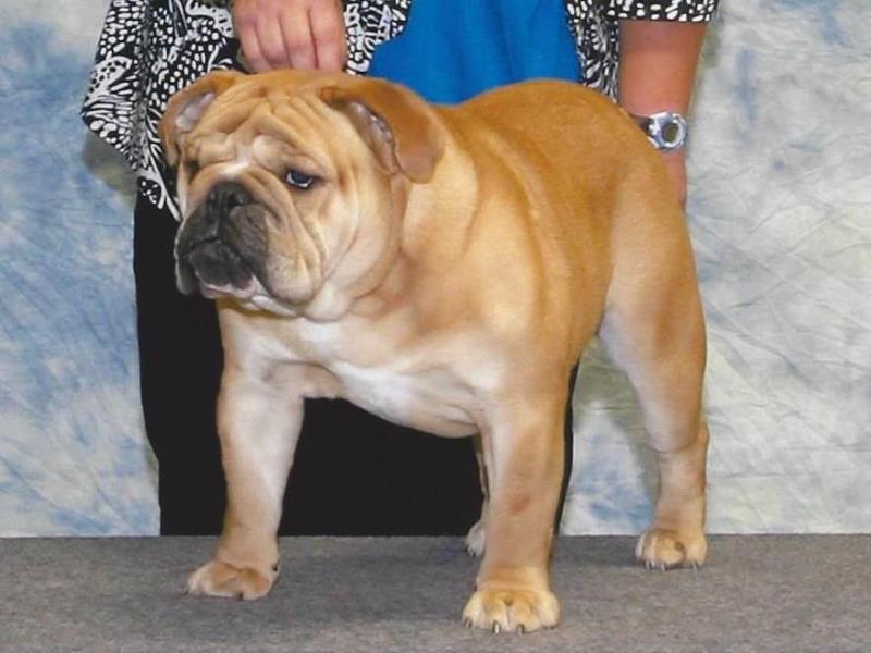 | AKC CHAMPION OFA Cardiac Certification- NORMAL [BU-CA931/25F/P-VPI] OFA Patellar Certification- NORMAL [BU-PA728/25F/P-VPI] Kalinda completed her championship on July 27, 2012 at 18 months of age. Her show record includes back to back majors, Best of Winners, Best of Opposite Sex and Best of Breed from the classes over Top Ranked Specials. She has an outstanding head, amazing jaw, gorgeous wrinkle, loads of bone, wide chest and a beautiful gait. |